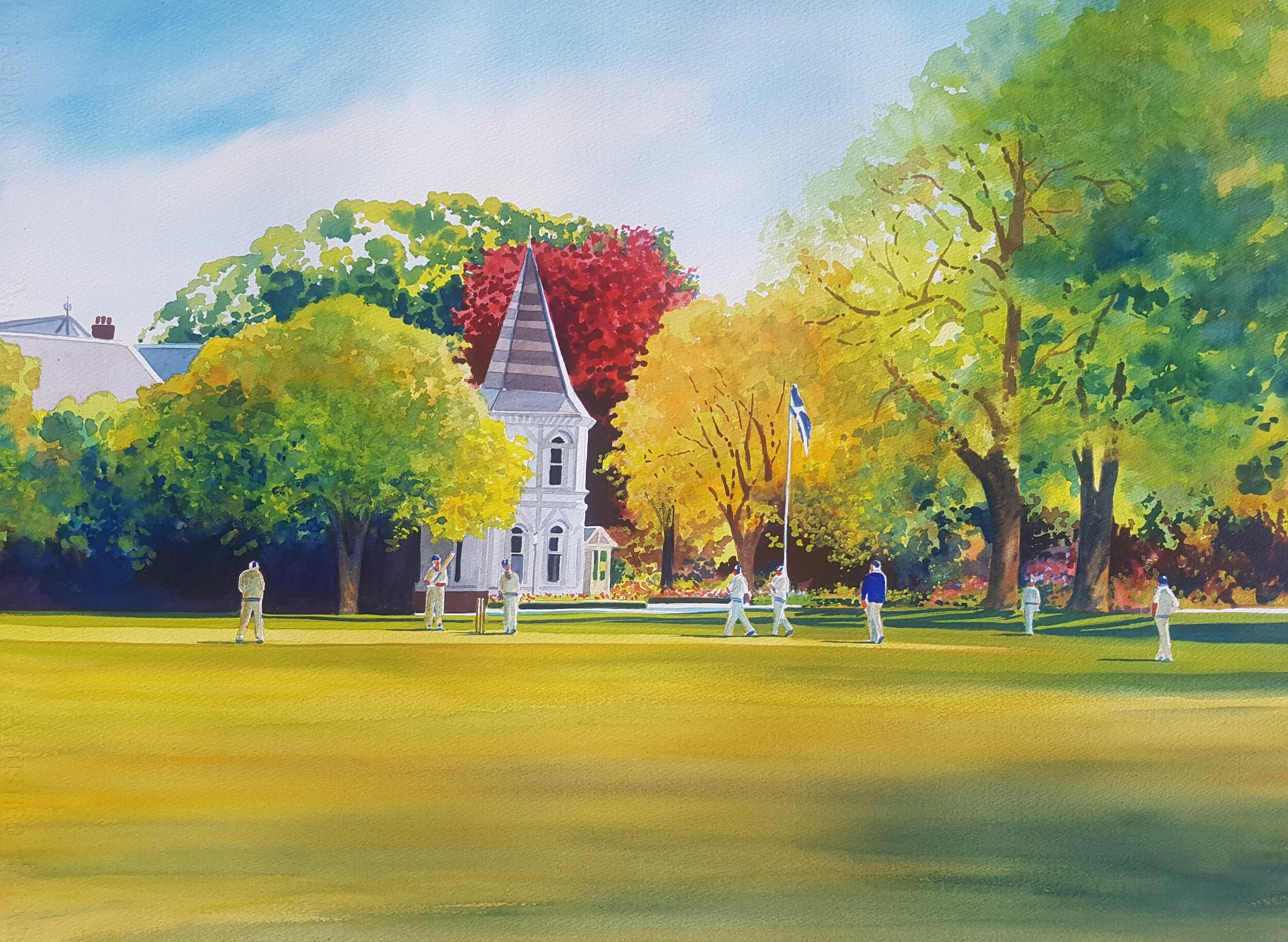 The Match, Christchurch Boys High School. Watercolour, 760x560mm. [sold] GP*