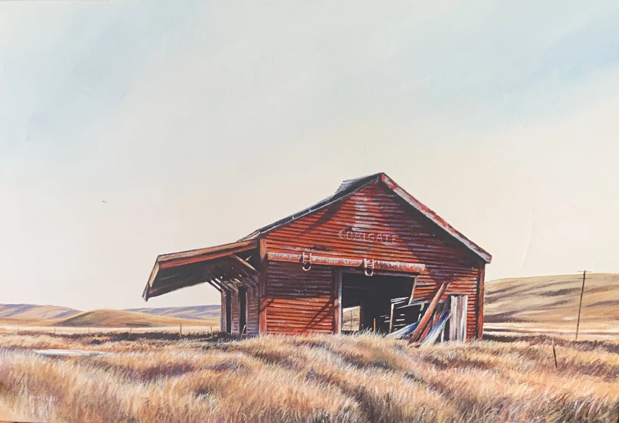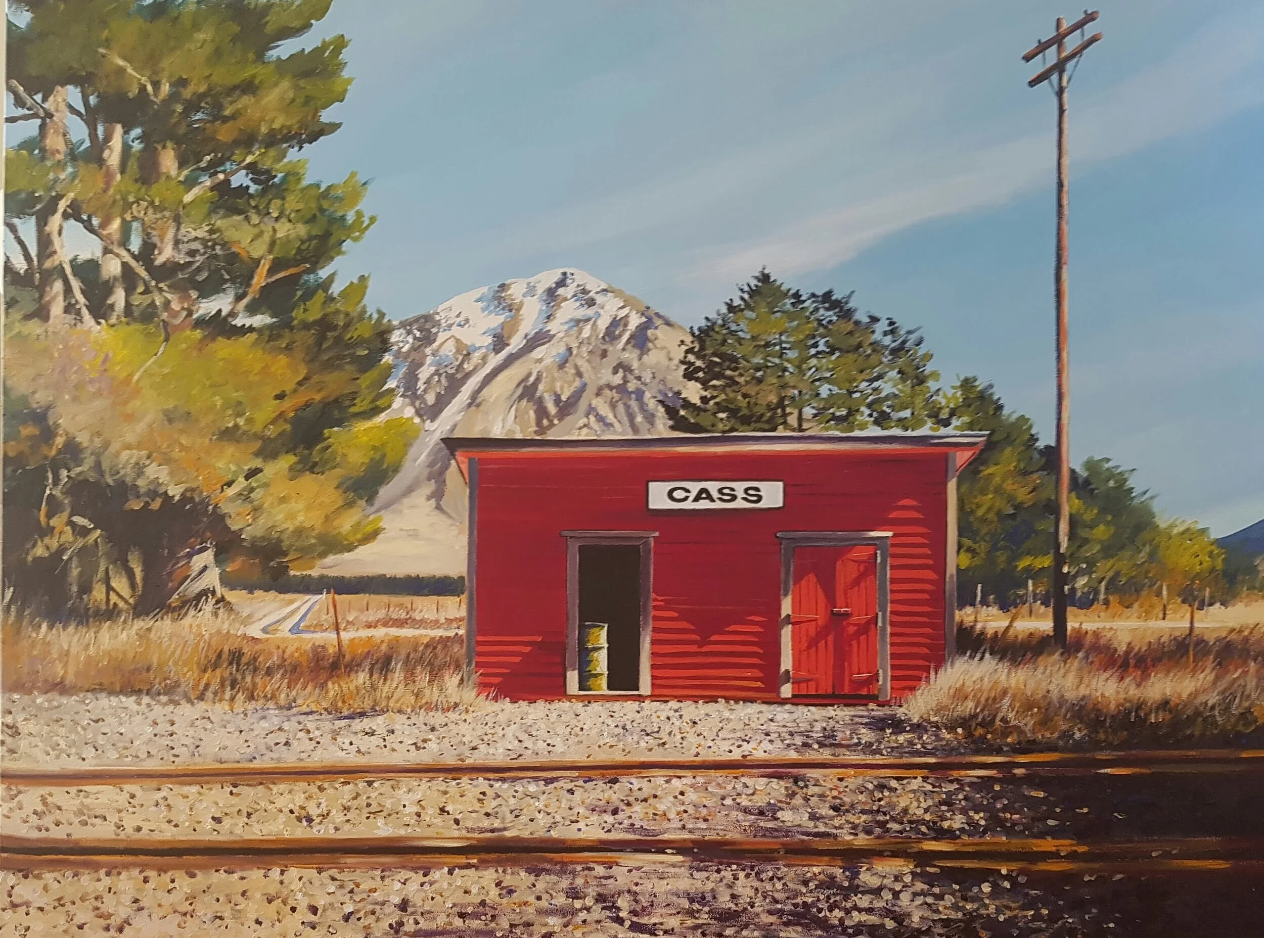 Waiho Downs Siding, South Canterbury. Acrylic, 1520x600mm. [sold] GP*