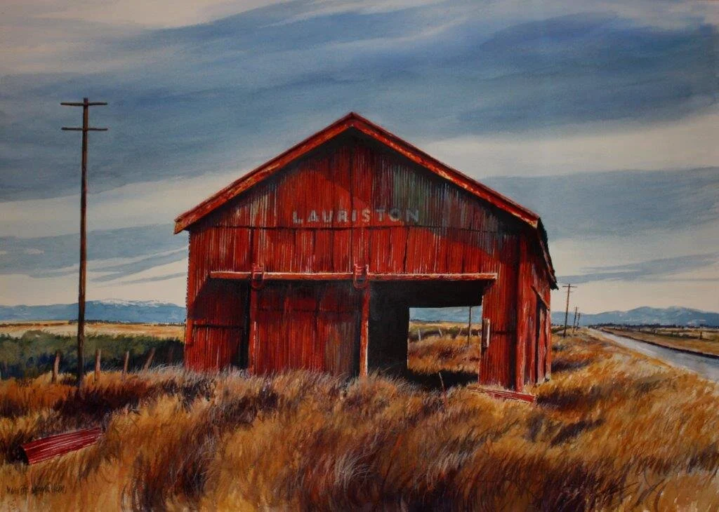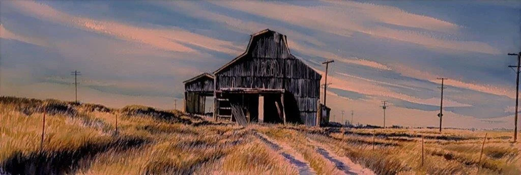 White Barn, North Canterbury. Watercolour, 1020x380mm. [sold]
